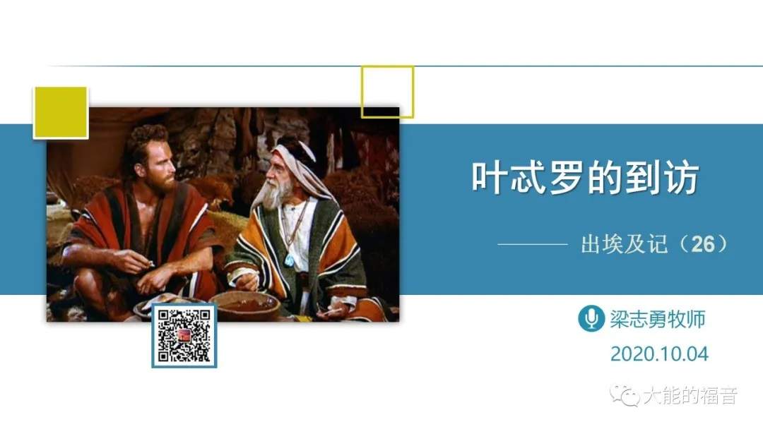 【出18:5】摩西的岳父叶忒罗,带着摩西的妻子和两个儿子来到 神的山,就是摩西在旷野安营的地方。