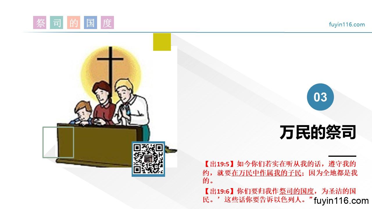【出19:6】你们要归我作祭司的国度,为圣洁的国民。’这些话你要告诉以色列人。”