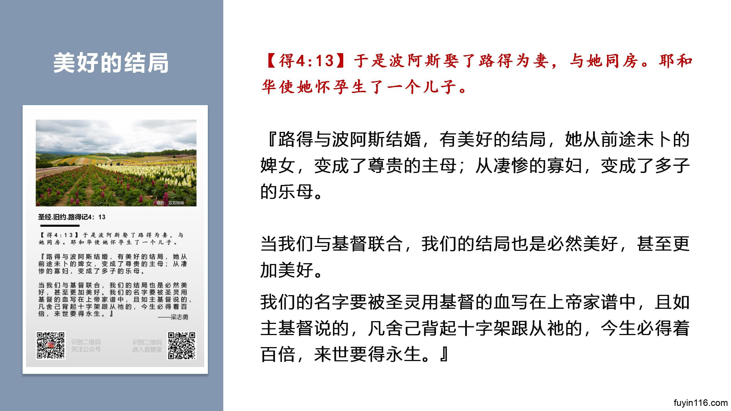 求主让每一个听众,让我们从《路得记》的信息里,信心得坚固,成为紧紧跟随主基督耶稣的人。