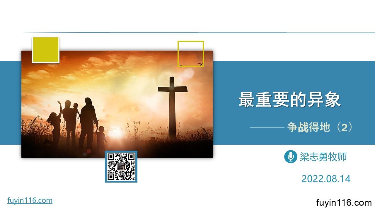 在8月14日,我们进入新系列《顺 服 基 督,争 战 得 地》的第二讲分享。