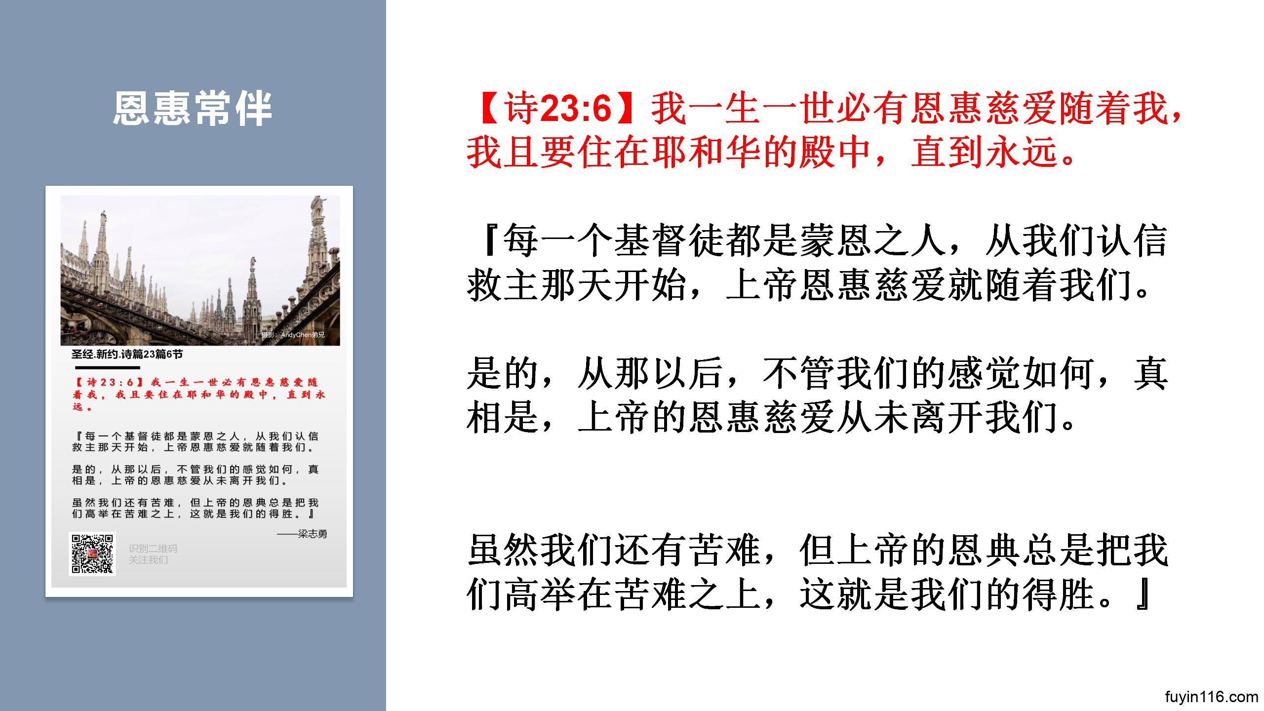 诗篇23篇(6)恩惠常伴,圣殿永住