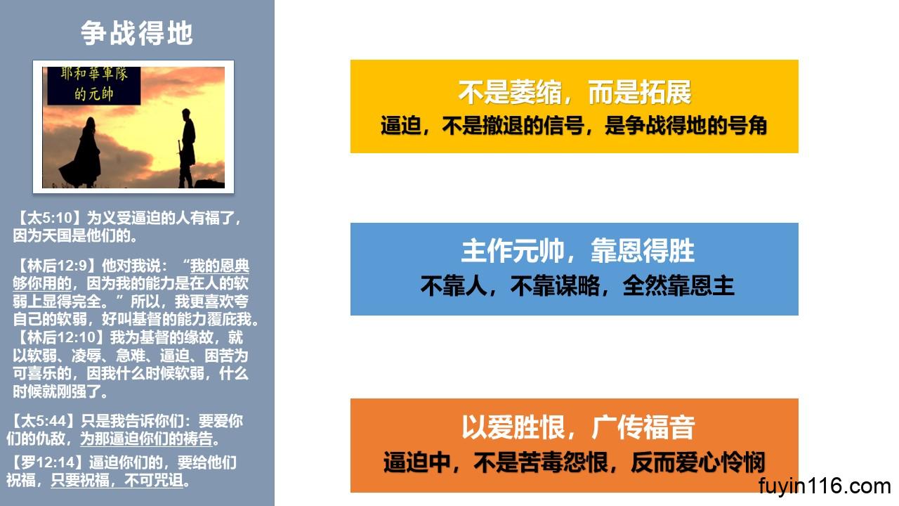 求你赐福我们所讲的《顺 服 基 督,争 战 得 地》系列信息,借着我们主日讲台的信息分享,让你的百姓更认识主的美意,更顺服主的带领。