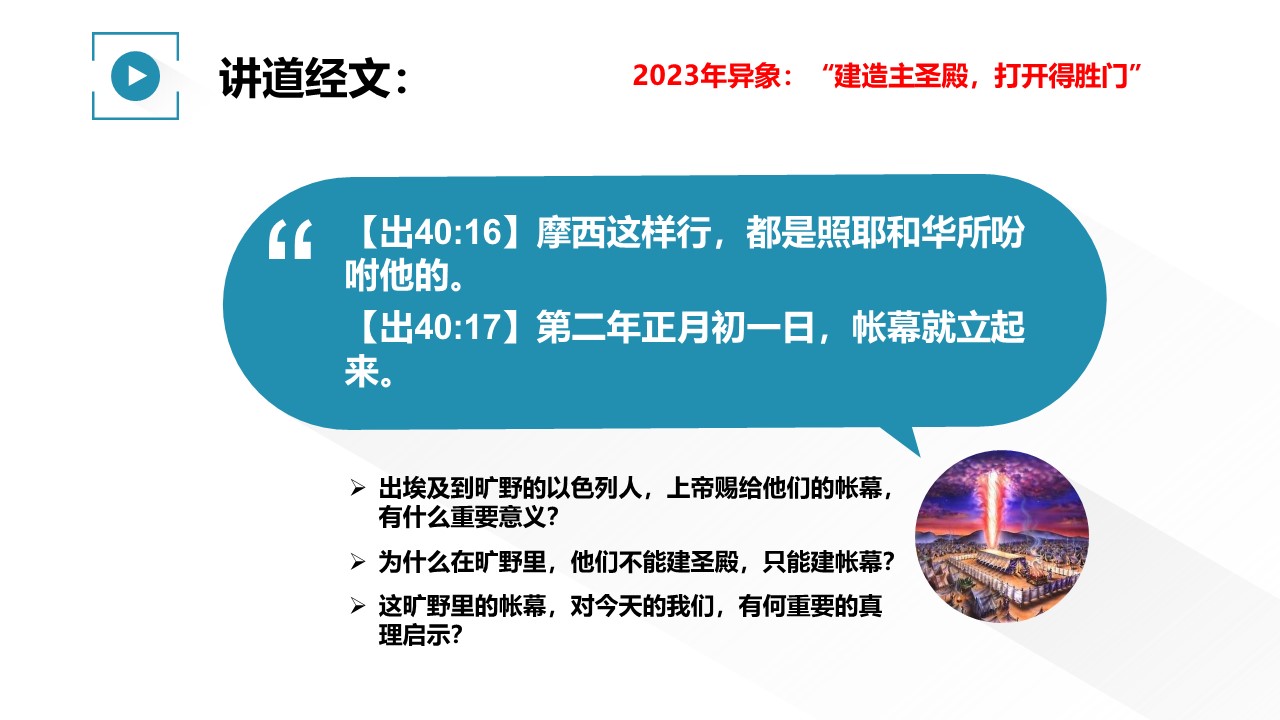 这旷野里的帐幕,对今天的我们,有何重要的真理启示?