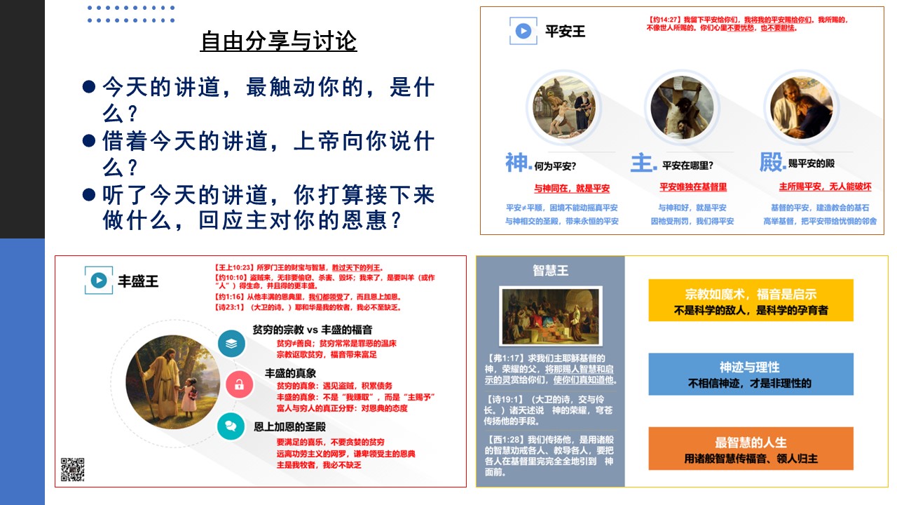 作为平安王、丰盛王和智慧王,所罗门分别给我们哪些重要的真理启迪?