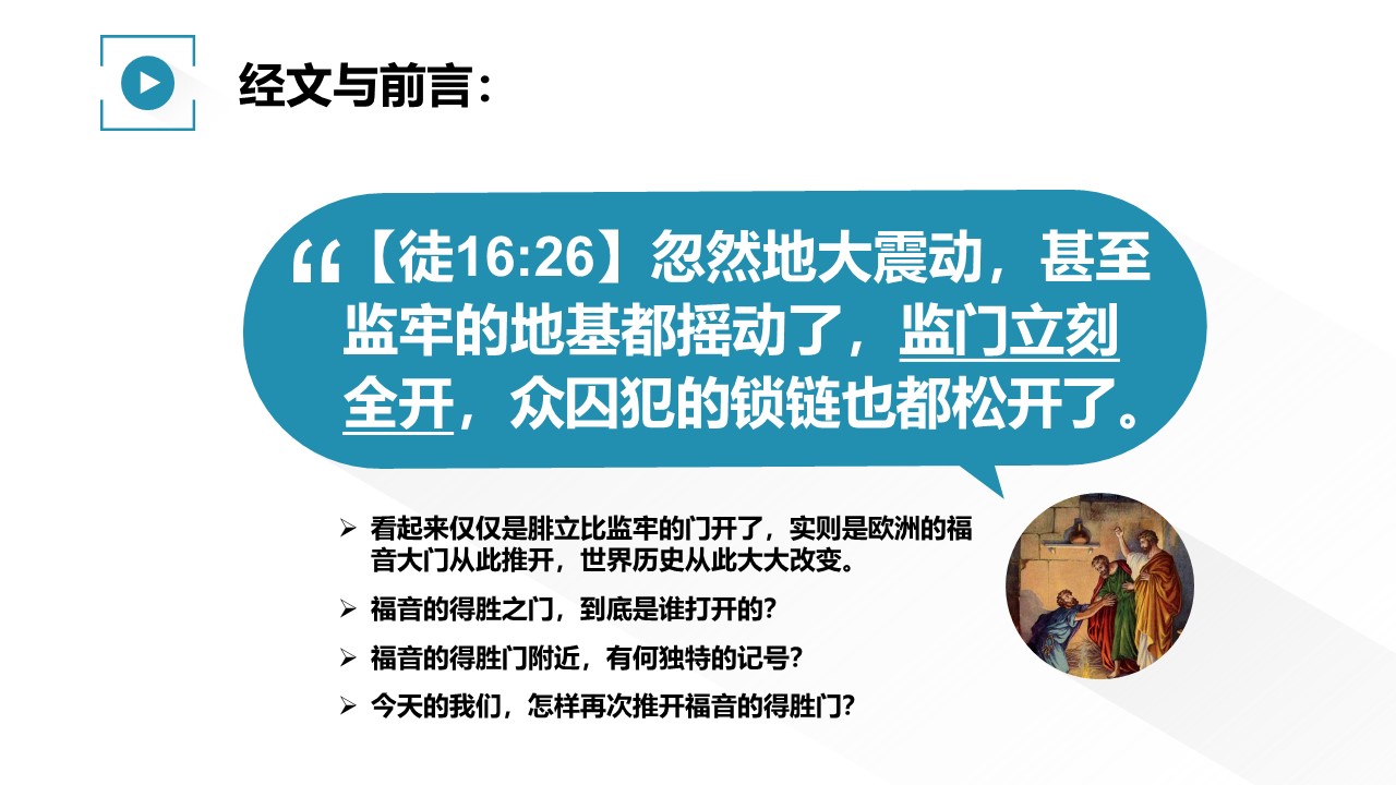 这不仅是腓立比监牢的门开了,实则是欧洲的福音大门从此推开,世界历史从此大大改变。