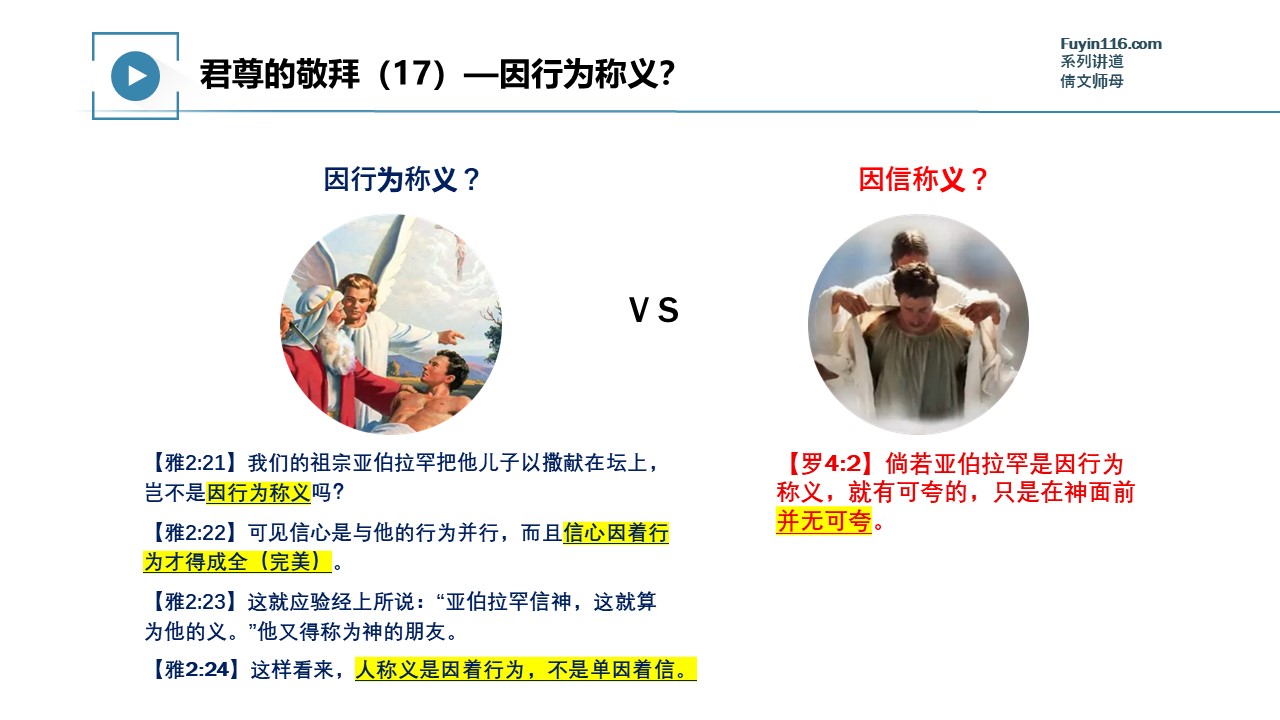 君尊的敬拜(17)因行为称义?