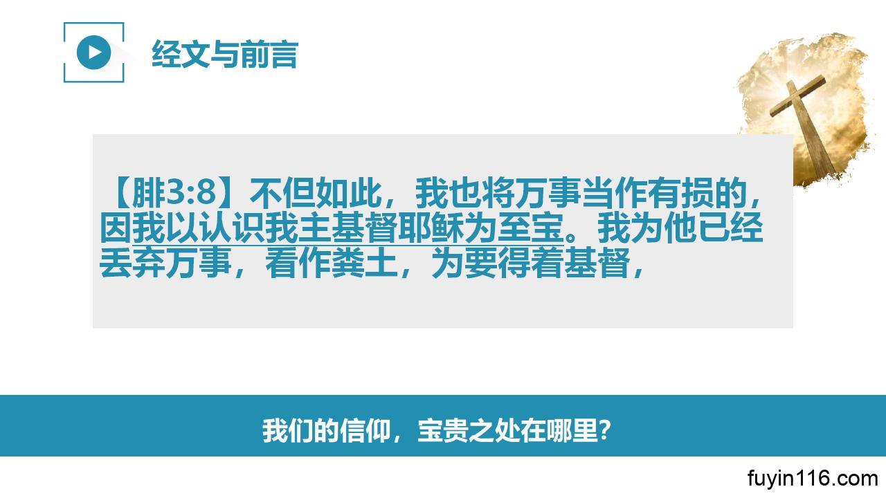 【腓3:8】不但如此,我也将万事当作有损的,因我以认识我主基督耶稣为至宝。我为他已经丢弃万事,看作粪土,为要得着基督,