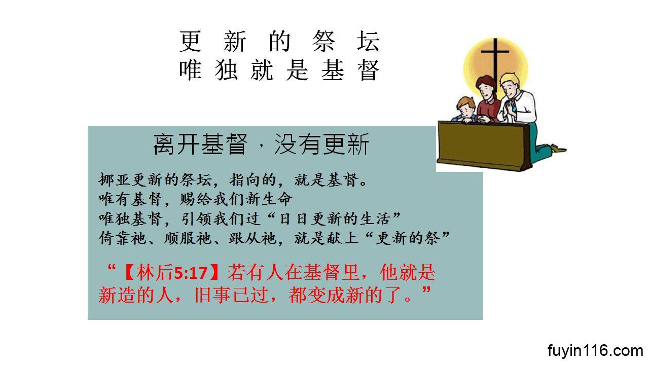 求主让我们认识“挪亚的祭坛”的奇妙真理,更倚靠基督,生命更新,不断得胜。