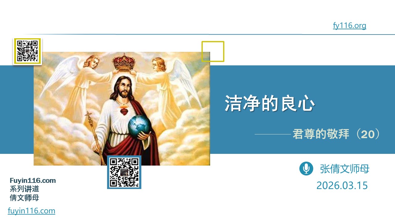 每个人都有良心,良心的重要性,不言而喻。 我们的良心,怎样才能得到安息? 我们的良心,怎样才能得到洁净? 我们还需要认罪吗,到底怎样认罪,才能让良心重新得力? 愿上帝的祝福借着祂的真道,更多地临到每一个认真聆听的灵魂。 欢迎您收听: 《洁净的良心》 更多精彩丰富的内容,尽在fyradio.top;欢迎在浏览器里收藏访问我们的网站,不受微信的限制 本文链接: https://fyradio.top/z105 您也可以点击下面的链接,重温之前的信息: 《君尊的敬拜系列》 ⚠️⚠️⚠️ 注意 ⚠️⚠️⚠…