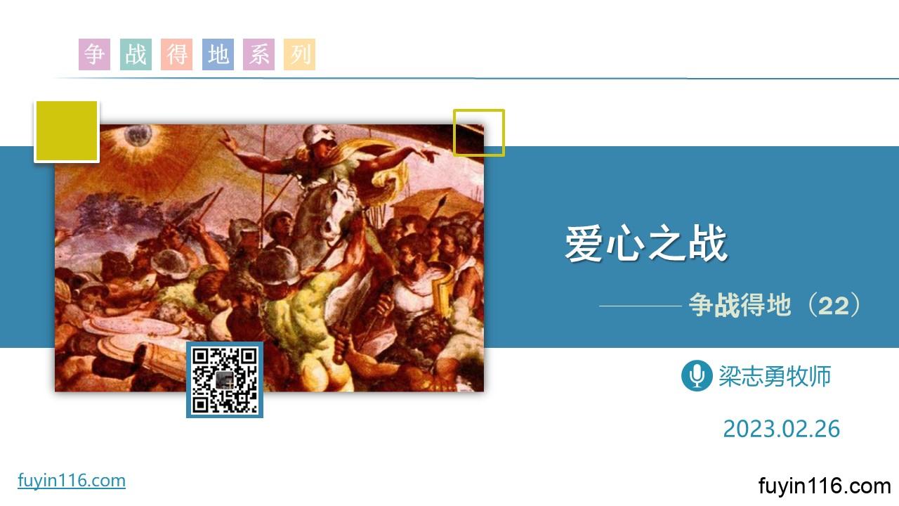 在2月26日,我们继续《争战得地》系列的分享,第22讲: 《爱心之战》 “基遍人归降以色列”这件历史事件,蕴含着哪些重要真理? 为什么我们称“基遍之战”为“爱心之战”? 基遍之战中,为何上帝行了“日头停止”的大神迹? 愿上帝的祝福借着祂的真道,更多地临到每一个认真聆听的灵魂。 欢迎您跟着我们的文章的提示,收听我们的录音: 《爱心之战》 您也可以点击下面的链接,重温之前的信息: 《争战得地》系列 《我宁愿有耶稣》 点击音频媒体前面的小三角“►”就可以播放 了: 视频整理完成,我们就会把讲道视频共享出来,…