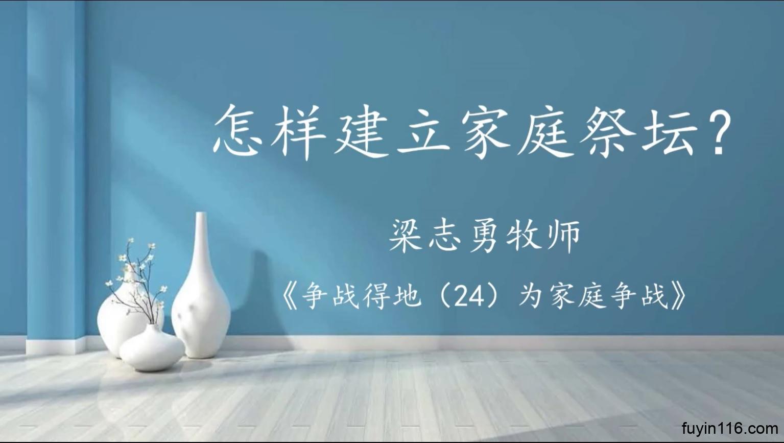 侍奉上帝的家庭 是特别蒙福的; 是永不被败坏的世界吞没的。 我们建立的家庭祭坛, 不是彼此控告的审判台, 而是求主祝福的施恩座。 在祭坛上,我们要求最大的福 就是“主的心,在我家中得满足” ——梁志勇《为家庭争战》 《争战得地(24)为家庭争战》 《福音布道》系列 《争战得地》系列 《福音观影会》系列 《旧约里的福音》系列 《祭坛系列》讲道 《因信称义》系列讲道(更新中) 《希伯来书》系列讲道(全) 《出埃及记》系列讲道(全) 《讲道信息》汇总 《梁牧清风》圣…